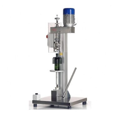 Die Flasche hebt sich mittels eines Hebels zum Gewindekopf – Manuell