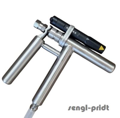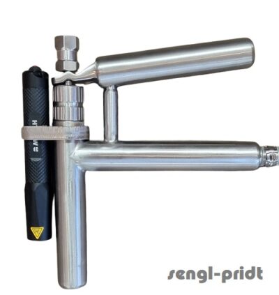 - Füllpistole aus Edelstahl mit Lampe (Batteriebetrieben)