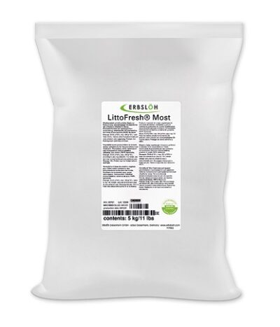 LittoFresh® Most ist ein Pulverprodukt ohne Kaseinbestandteile, auf Basis von Pflanzenprotein, Cellulose, PVPP und Silikaten.