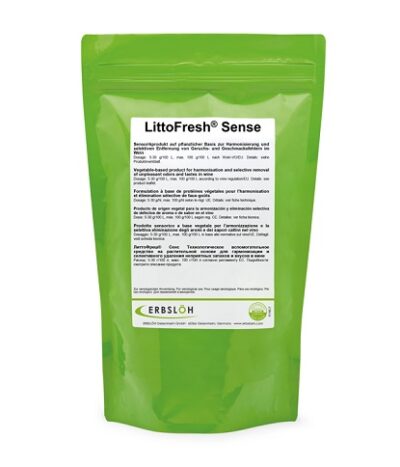 • LittoFresh® Sense besteht aus Pflanzenprotein, Bentonit und Silikaten und ist leicht suspendierbar.