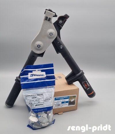 Die Gripple Spannzange spannt Drähte bis 400 kg Zugkraft, sie ist für alle handelsüblichen Gripple Verbinder geeignet.